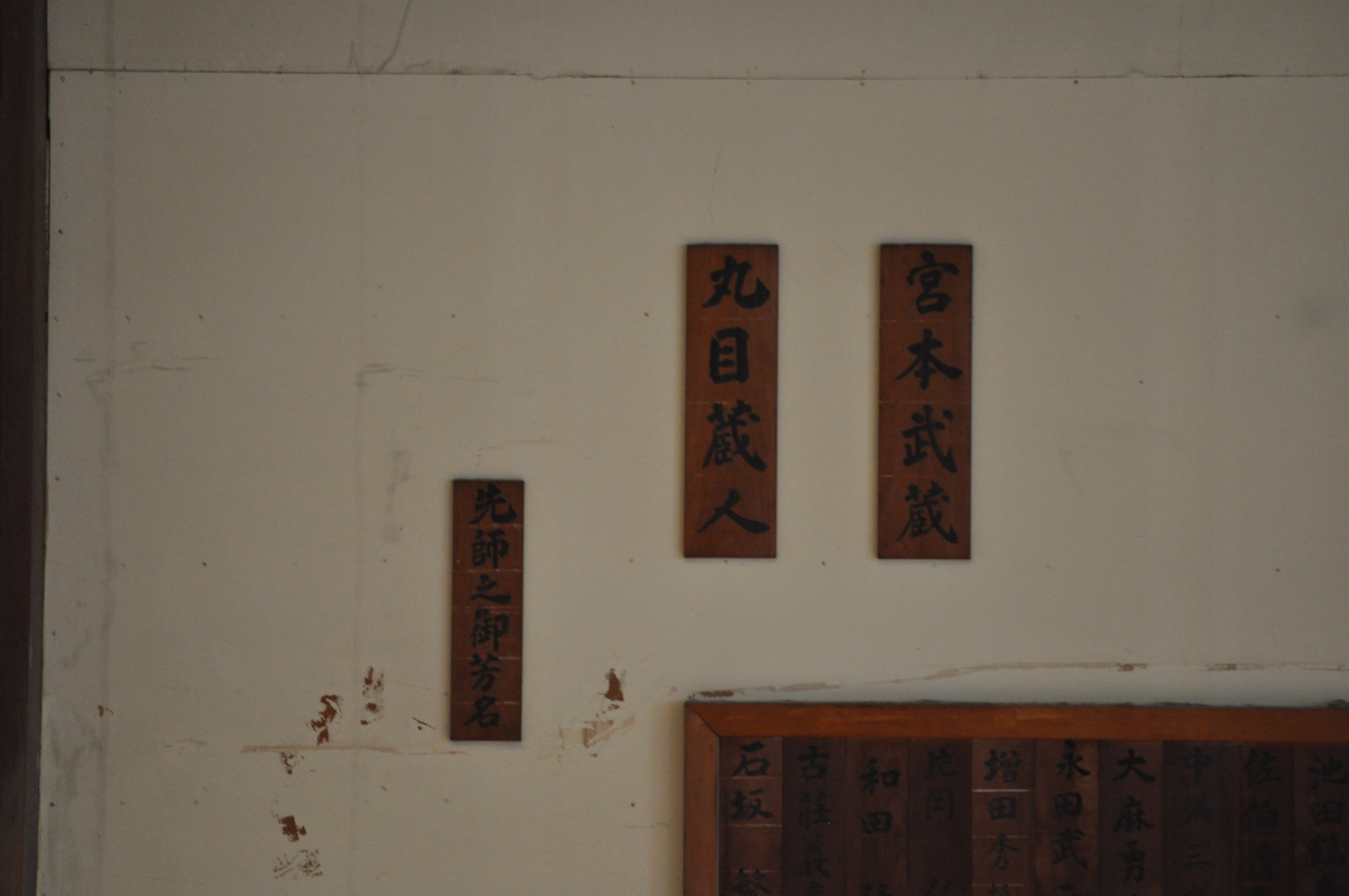 image Published March 23, 2015 at 4288 × 2848 in Kumamoto enbu -part 1 ← Previous Plaques displaying names of famous Shihan of Kumamoto – the two above all the others show Miyamoto Musashi and the founder of Taisha-ryu Marume Kurando
